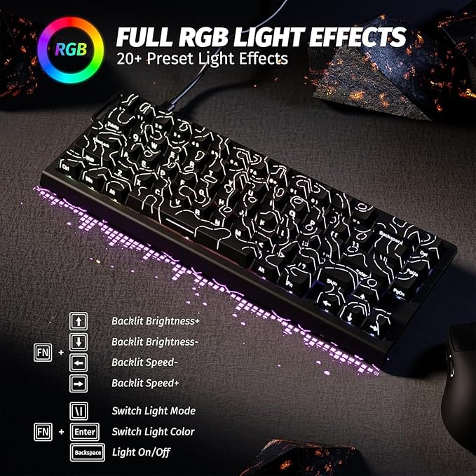- 【Programmable NKRO ANSI Keyboard】Web driver link: qmk.top, no need to install, you can use it to remap key function, set macro and hot keys, adjust light mode and DIY your own light effect, apply desired function to the key you want, and choose or customize keystroke activate or deactivate actuation point for your typing or gaming need, minimize latency, provide a revolutionary full control of fast and ultra-accurate keystroke, always gets pre-acted in the game, design for win
