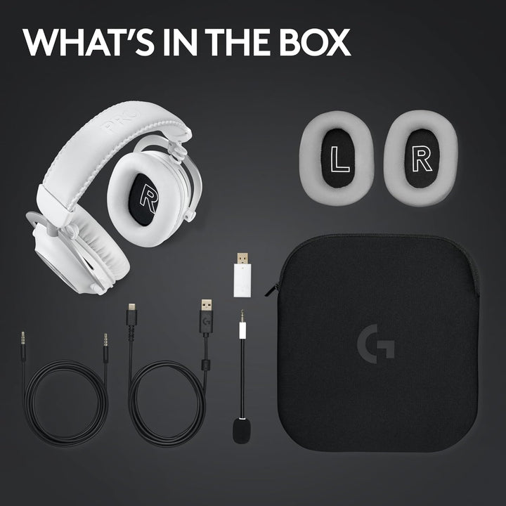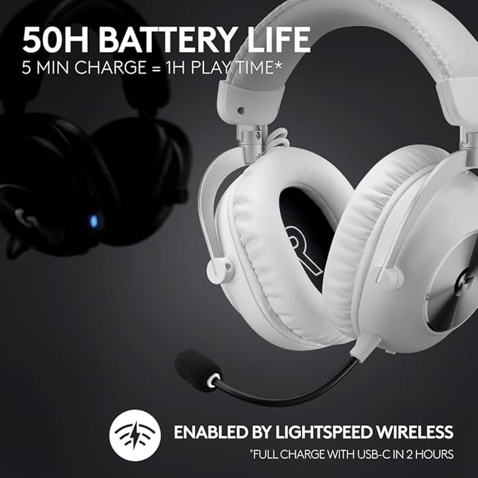 - Logitech G PRO X 2 LIGHTSPEED Wireless Gaming Headset, Detachable Boom Mic, 50mm Graphene Drivers, DTS: X Headphone 2.0—7.1 Surround, Bluetooth/USB/3.5mm Aux, for PC, PS5, PS4, Nintendo Switch - White.