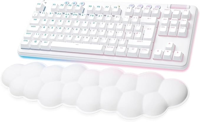 - Cloud-soft Comfort: Float away with G715’s dreamy white design and comfy, cloud-shaped palm rest; compact mechanical TKL keyboard layout and adjustable height give that good game feeling, all-day long