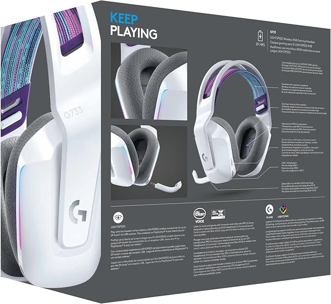 G733 weighs only 278 g for long-lasting comfort; Available in multiple colours; Each colour with vibrant reversible headband and corresponding earpads