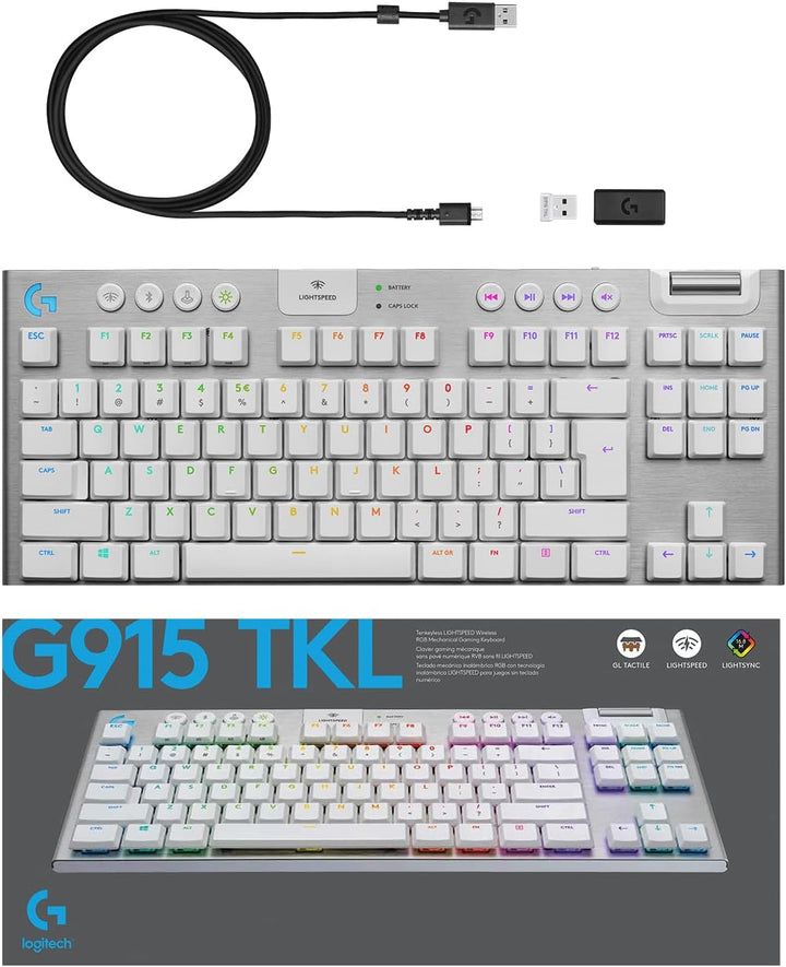 Logitech G915 Tkl Tenkeyless Lightspeed Wireless Rgb Mechanical Gaming Keyboard, Low Profile Switch Options, Lightsync Rgb, Advanced Wireless And Bluetooth Support - US - Tactile Switch